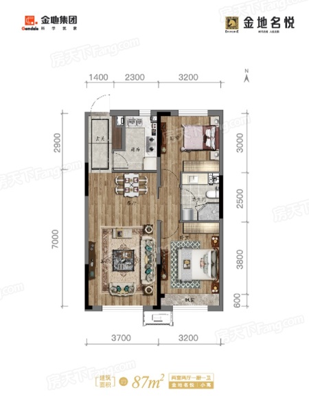 87平米户型-2室2厅1卫-87平