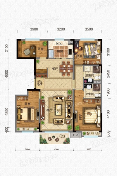 133平米户型-4室2厅2卫-133平