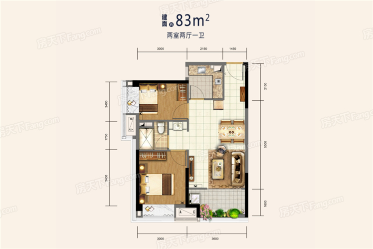 83㎡户型-2室2厅1卫-83平