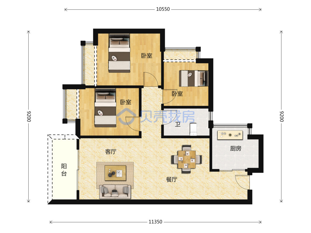 A户型-3室2厅1卫-83平