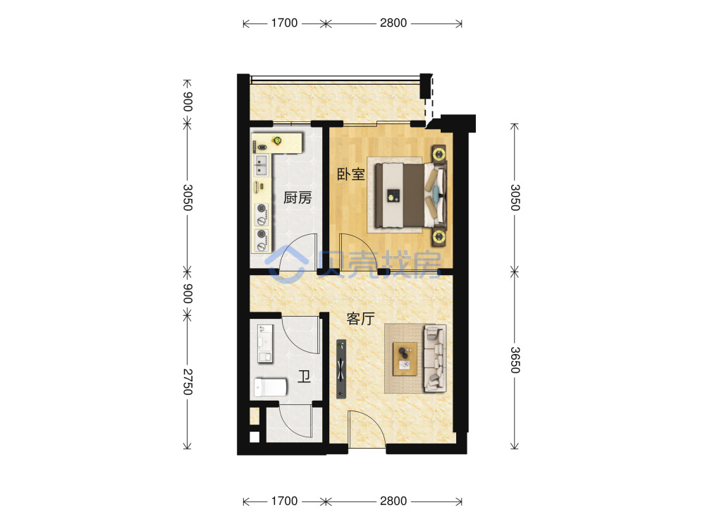 42户型-1室1厅1卫-42平