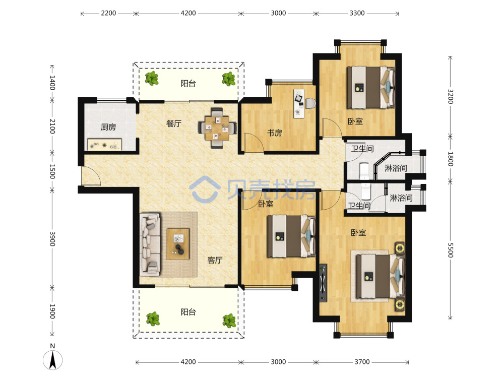 3栋02户型-4室2厅2卫-139平