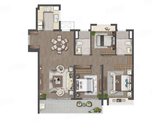 C2户型-3室2厅2卫-119平