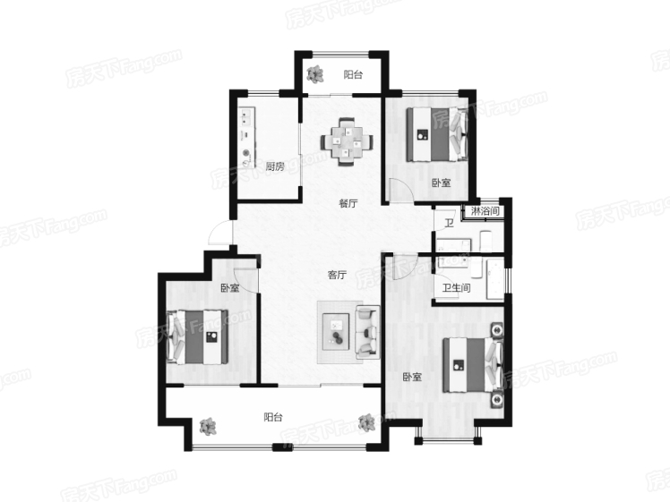 142.00㎡户型-3室2厅2卫-142平